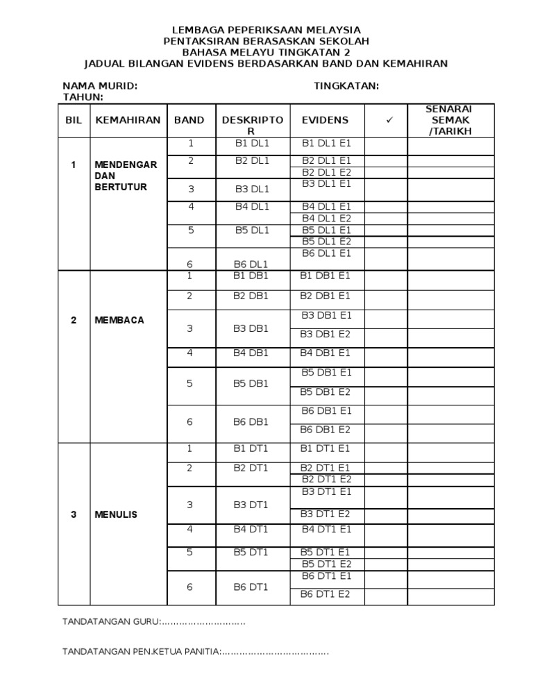 Borang Pbd Tingkatan 2 Bahasa Melayu